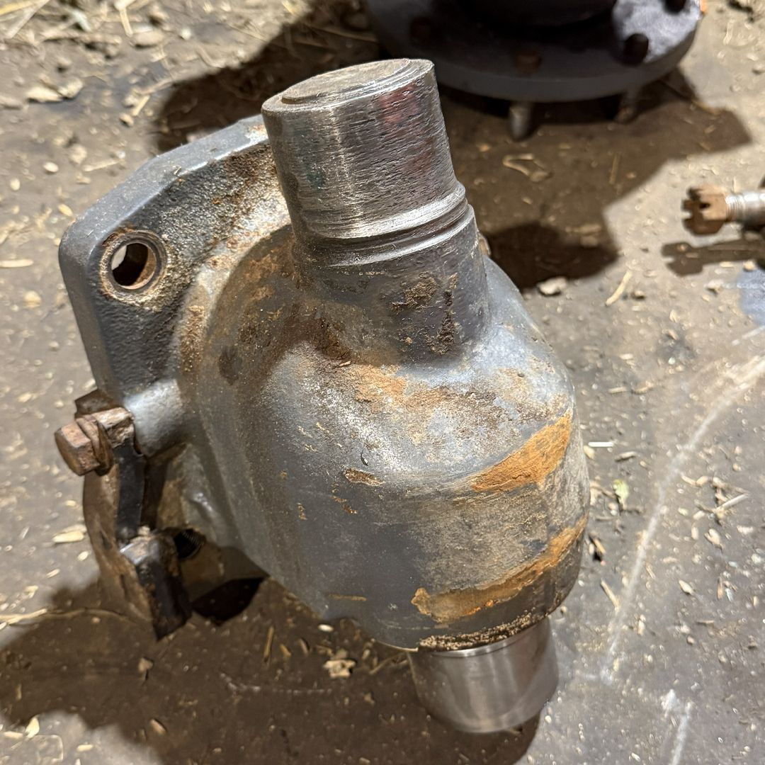 With the front axle lifted, the components were stripped down for inspection. It quickly became clear that a lack of regular greasing had allowed dirt and moisture past the seals. Over time, this had caused severe wear to the bushes and swivel pins. The wear was so bad that the swivel casting itself had been damaged, and both sides would need to be replaced. At this stage, simply fitting new bushes would have been pointless.