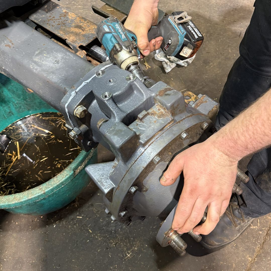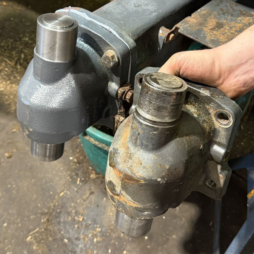 This is where preventative maintenance really proves its value. The constant pushing, lifting, and turning required for loader work significantly increases the load on the tractor’s front axle, steering system, pivot pins and bearings, making regular maintenance essential. Regular greasing and inspections would have significantly slowed the wear. Instead, what could have been a straightforward maintenance job turned into a much larger and more expensive repair.