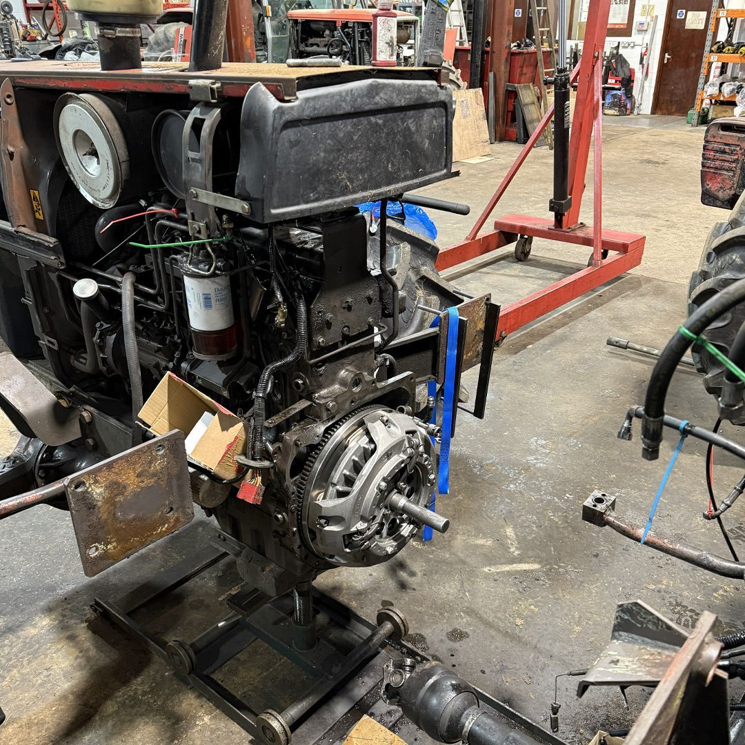 The tractor was struggling to engage properly, so our first job was to fit a new 13" clutch plate, along with a new flywheel, and fresh clutch bearings and bearing carrier.